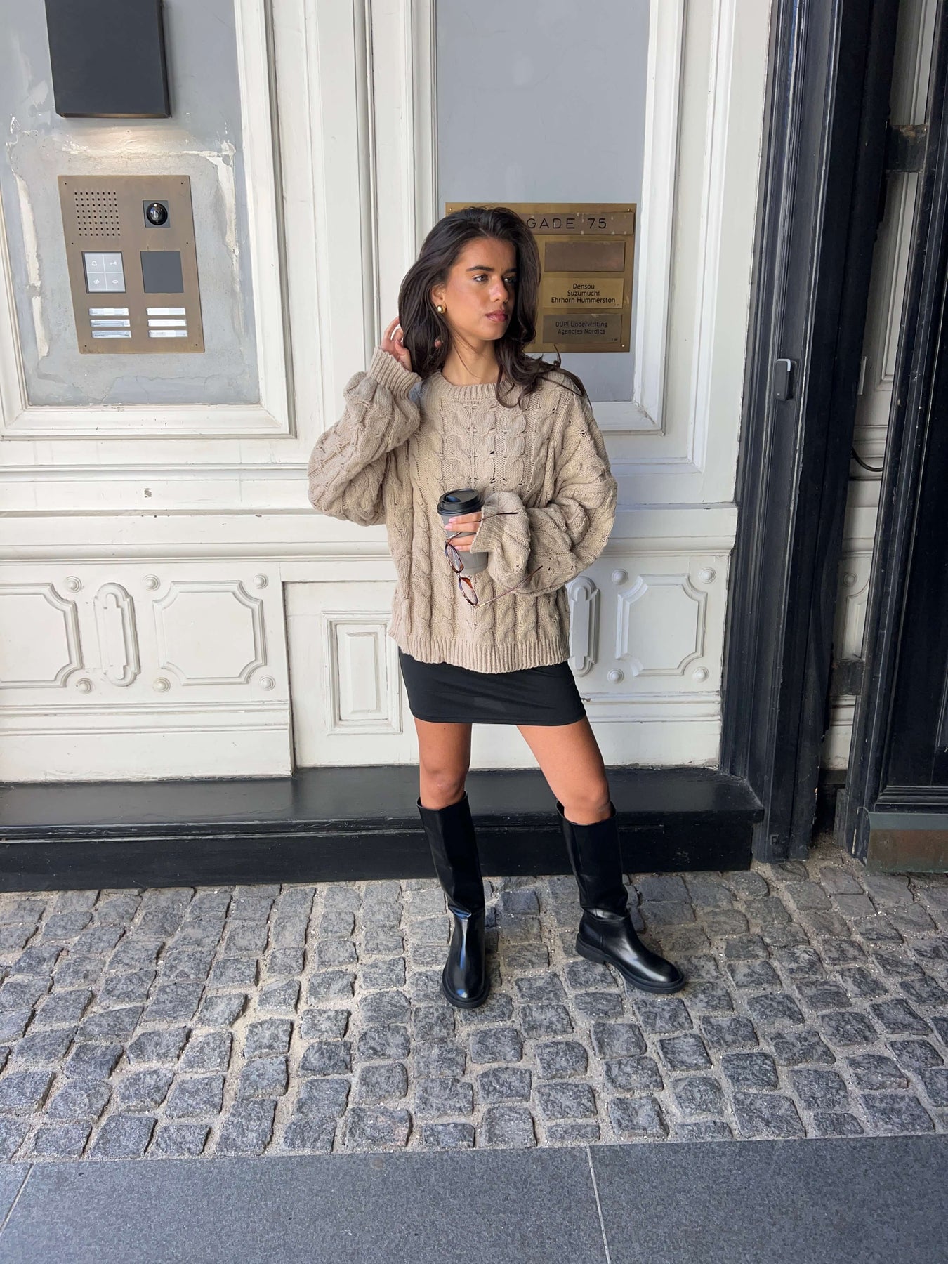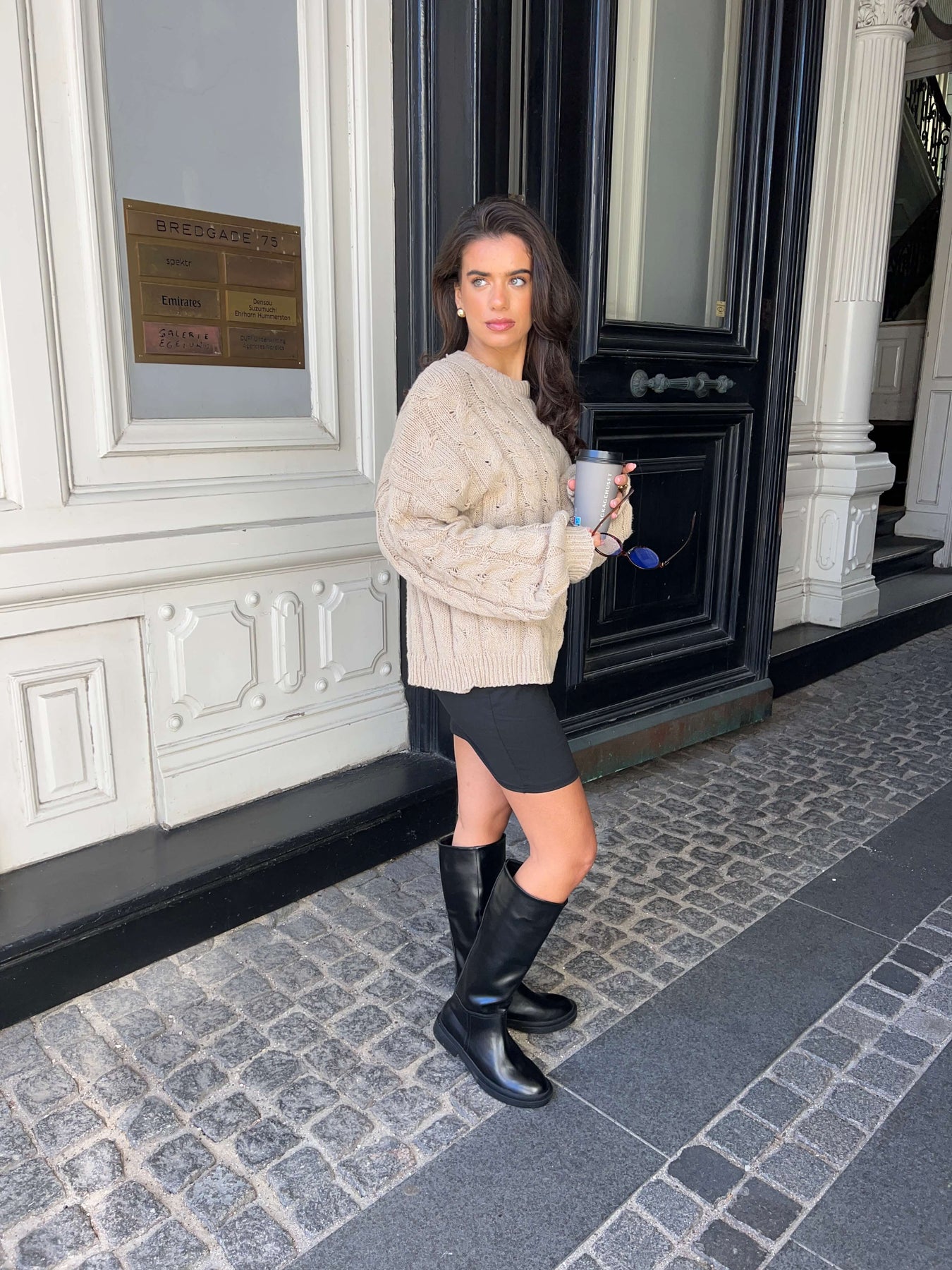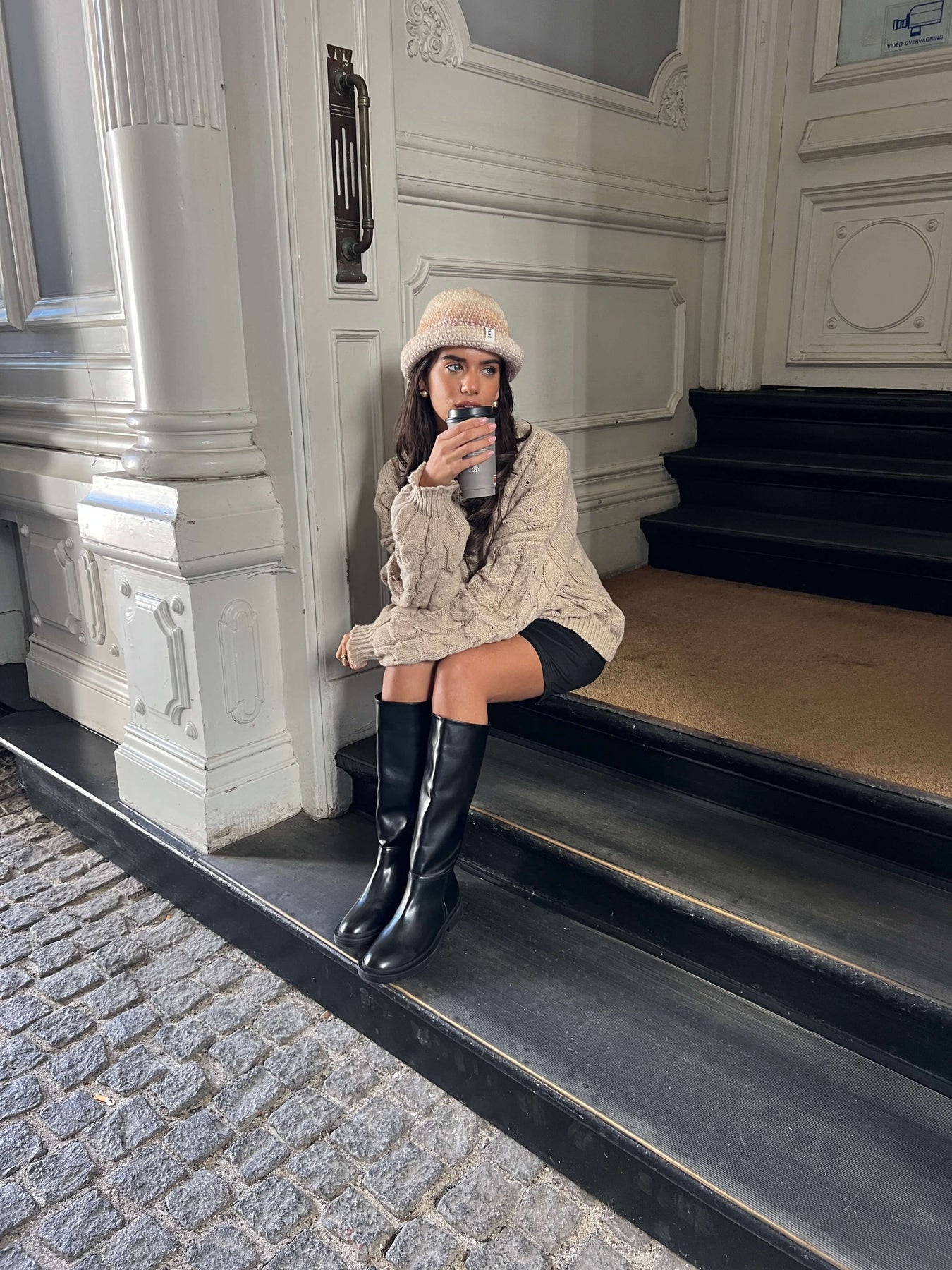 Our Lilla high boots in black are the perfect boots for both colder and warmer months. The design of the boots adds a classic yet exclusive look to any outfit, whether you are going for something neutral or more sophisticated. The boots come up to around the calf, just below the knee, and are flat.