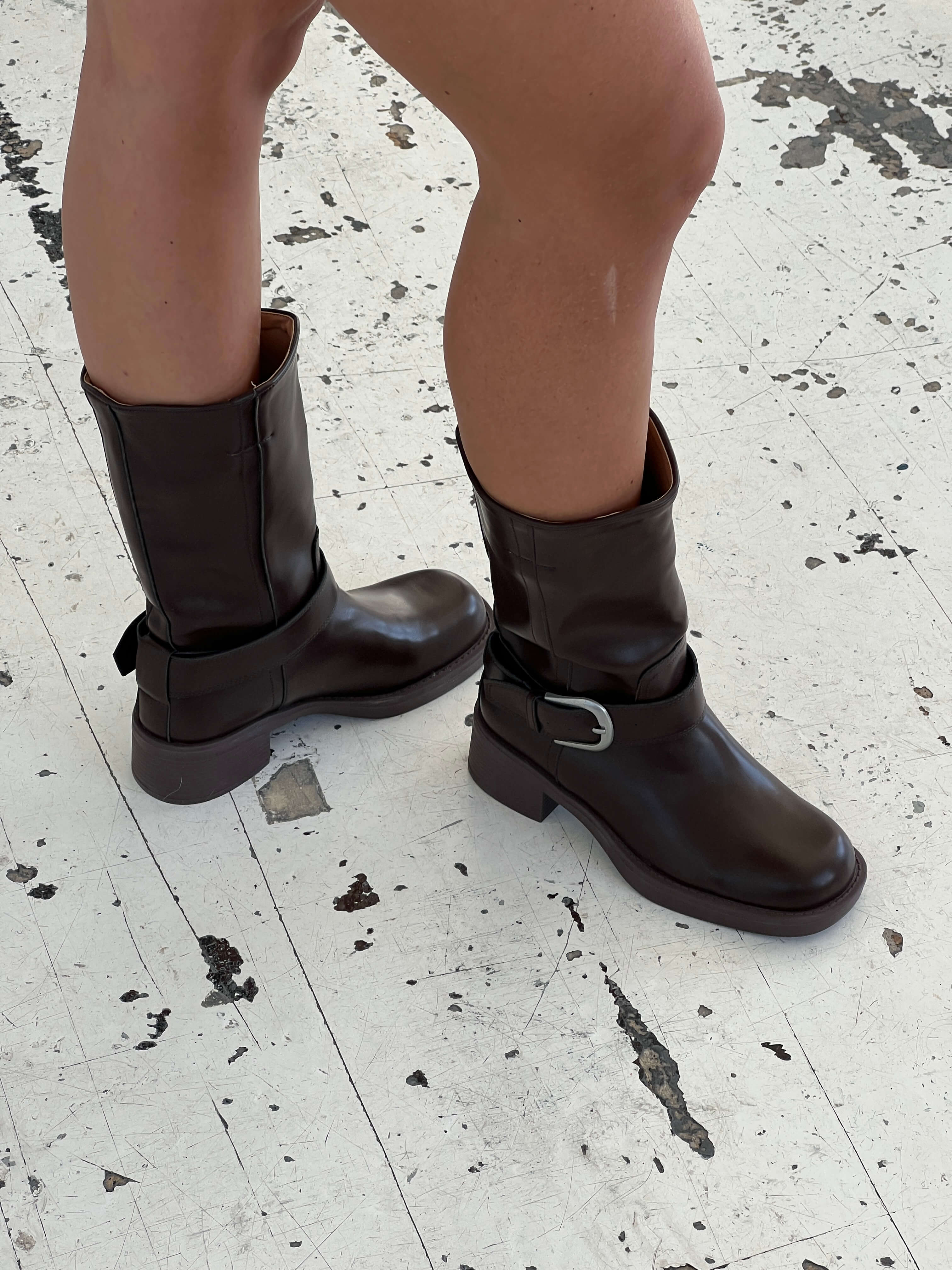 Our Lua buckle boots come in 2 different colours. The boots are designed in a mid height and have 1 buckle on the outside, adding a cool detail to an otherwise simple boot. The perfect boot with a zip closure on the inside and without a heel for any occasion, no matter the season🤎