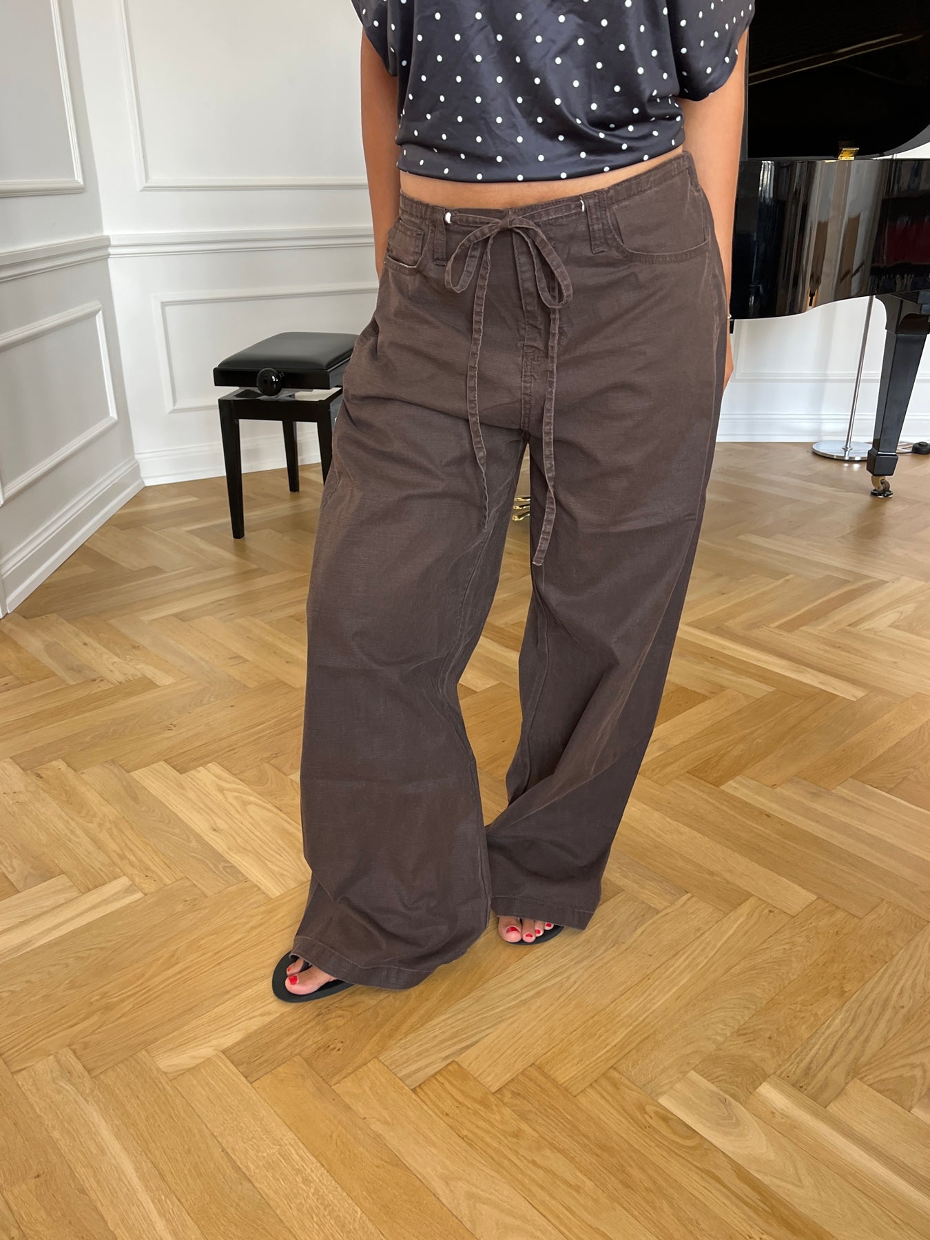 Our brown Jua pants feature a modern baggy fit that gives a relaxed and cool look. The pants close with a zipper and button and have practical pockets both in the front and back. With belt loops and extra length, they are perfect for both everyday wear and festive occasions 🤎