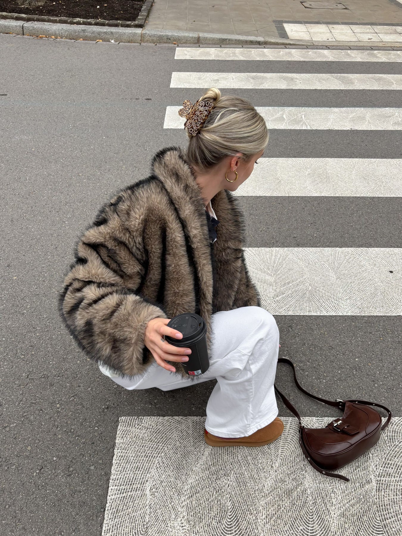 The Ziva fur jacket is a soft and stylish jacket in faux fur with a beautiful brown colour that has a slight texture in the shade, giving it a slightly more vibrant and exclusive look. It fastens with buttons at the front and has a comfortable, soft lining inside, making it comfortable to wear. A jacket that can easily be styled up or down – perfect for both everyday looks and slightly more formal occasions.