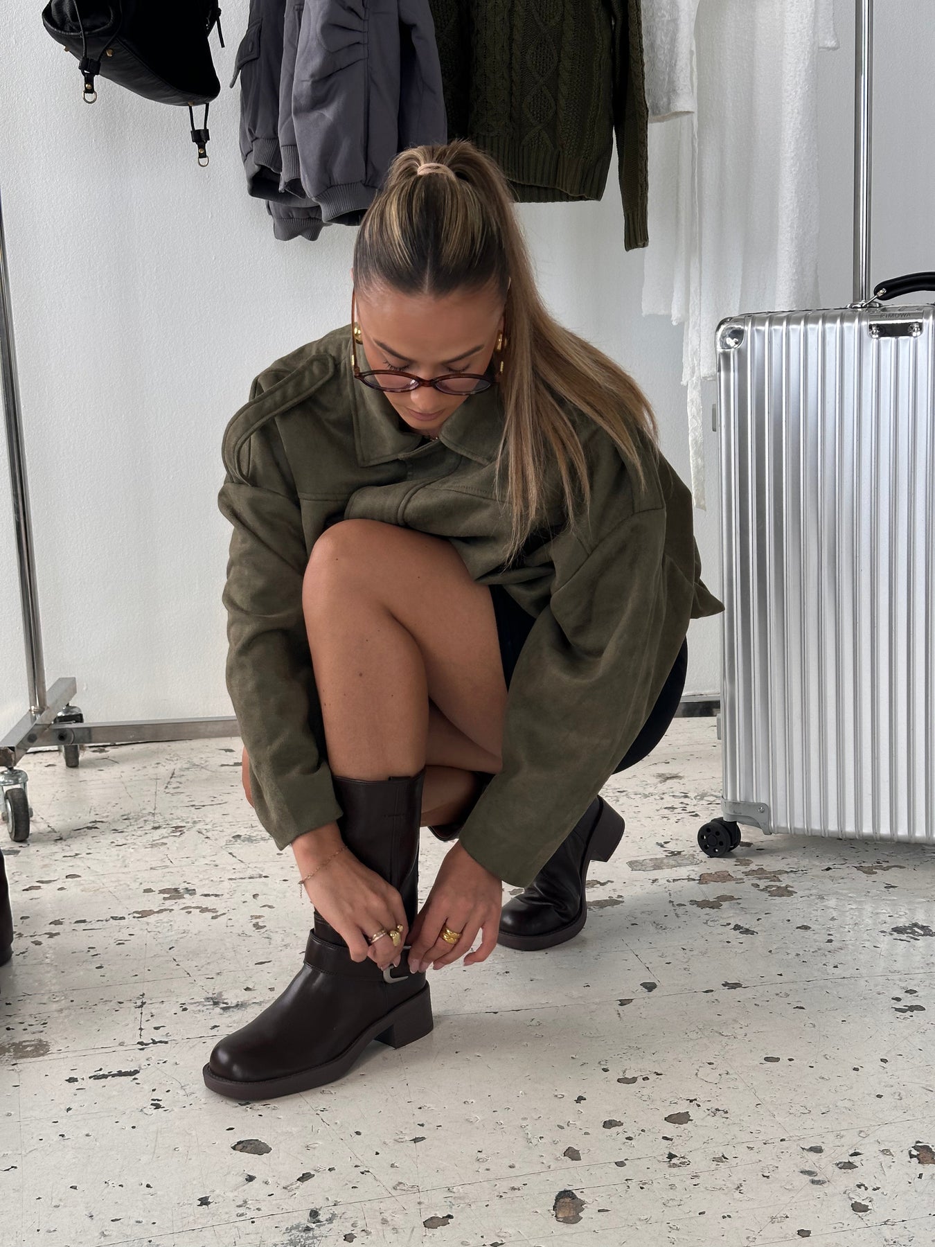 Our Lua buckle boots come in 2 different colours. The boots are designed in a mid height and have 1 buckle on the outside, adding a cool detail to an otherwise simple boot. The perfect boot with a zip closure on the inside and without a heel for any occasion, no matter the season🤎
