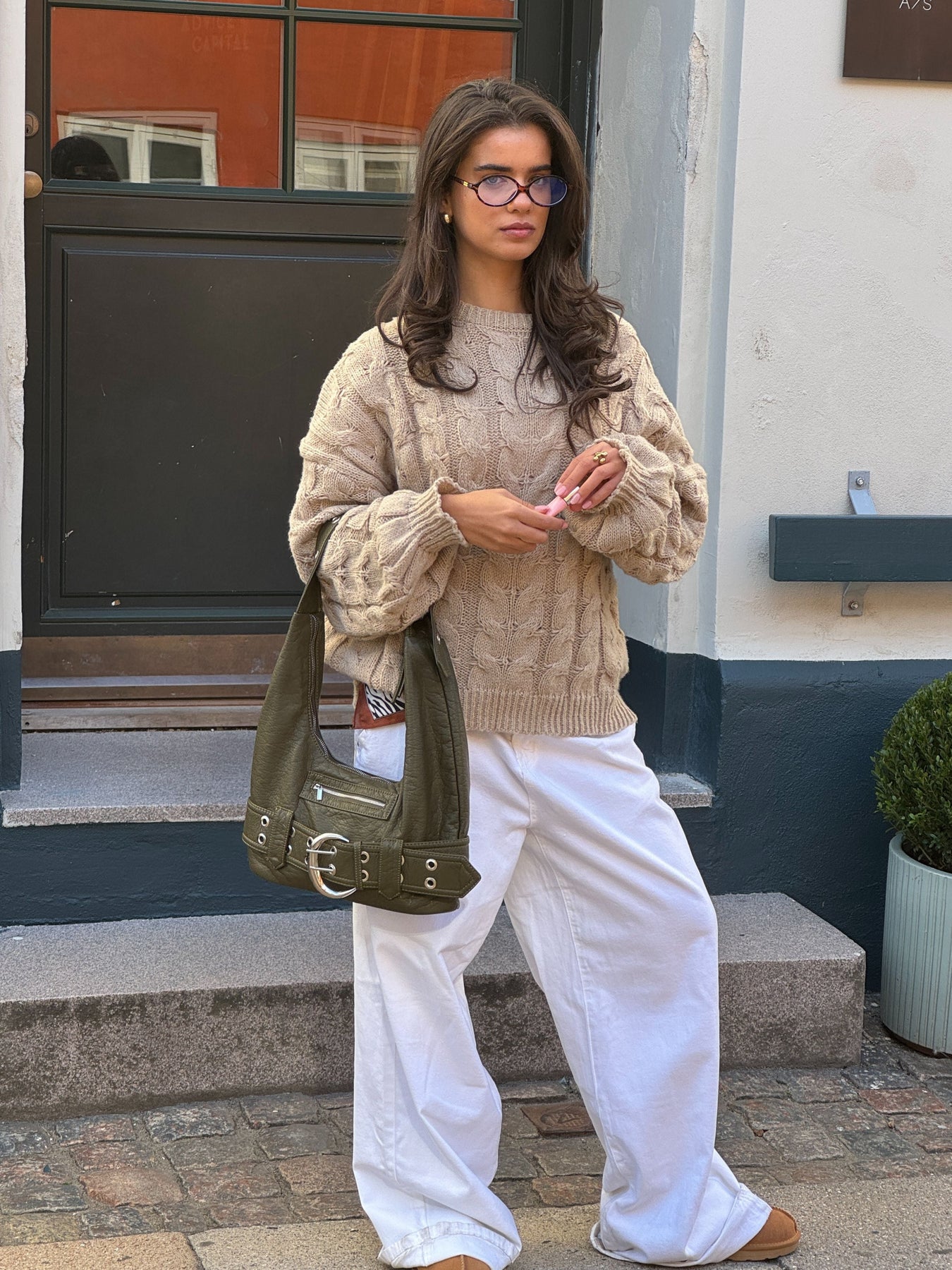 Our Ayla buckle shoulder bag in green combines a modern design with raw details. The bag is made of a soft, structured material and has an adjustable shoulder strap and a zippered pocket at the front. The wide adjustable belt buckle at the front gives the bag a raw and unique look that stands out and adds edge to any outfit. With plenty of space inside, it is both practical and stylish - perfect for everyday use when you want a bag with personality.