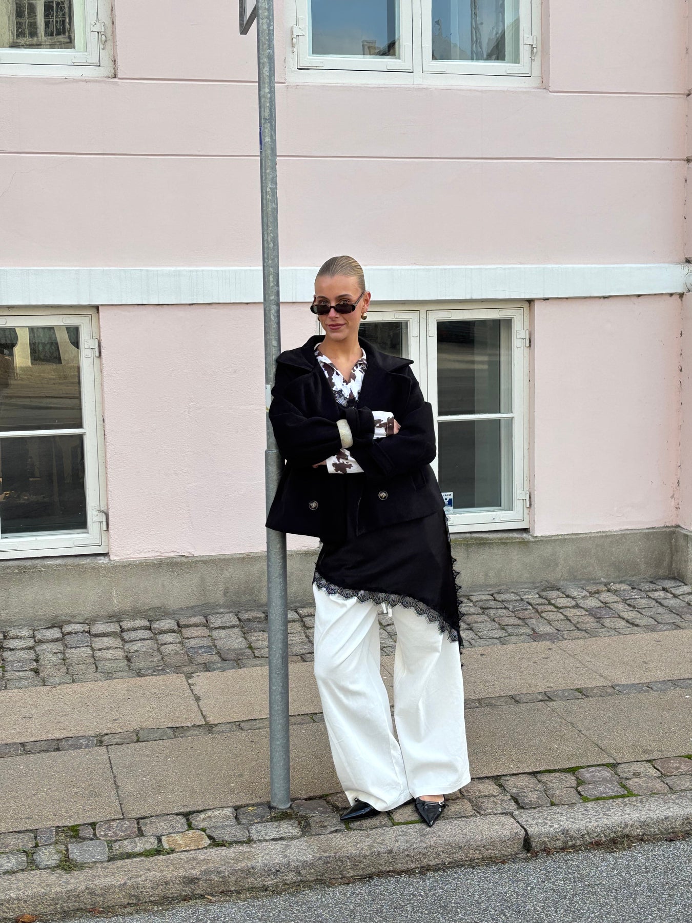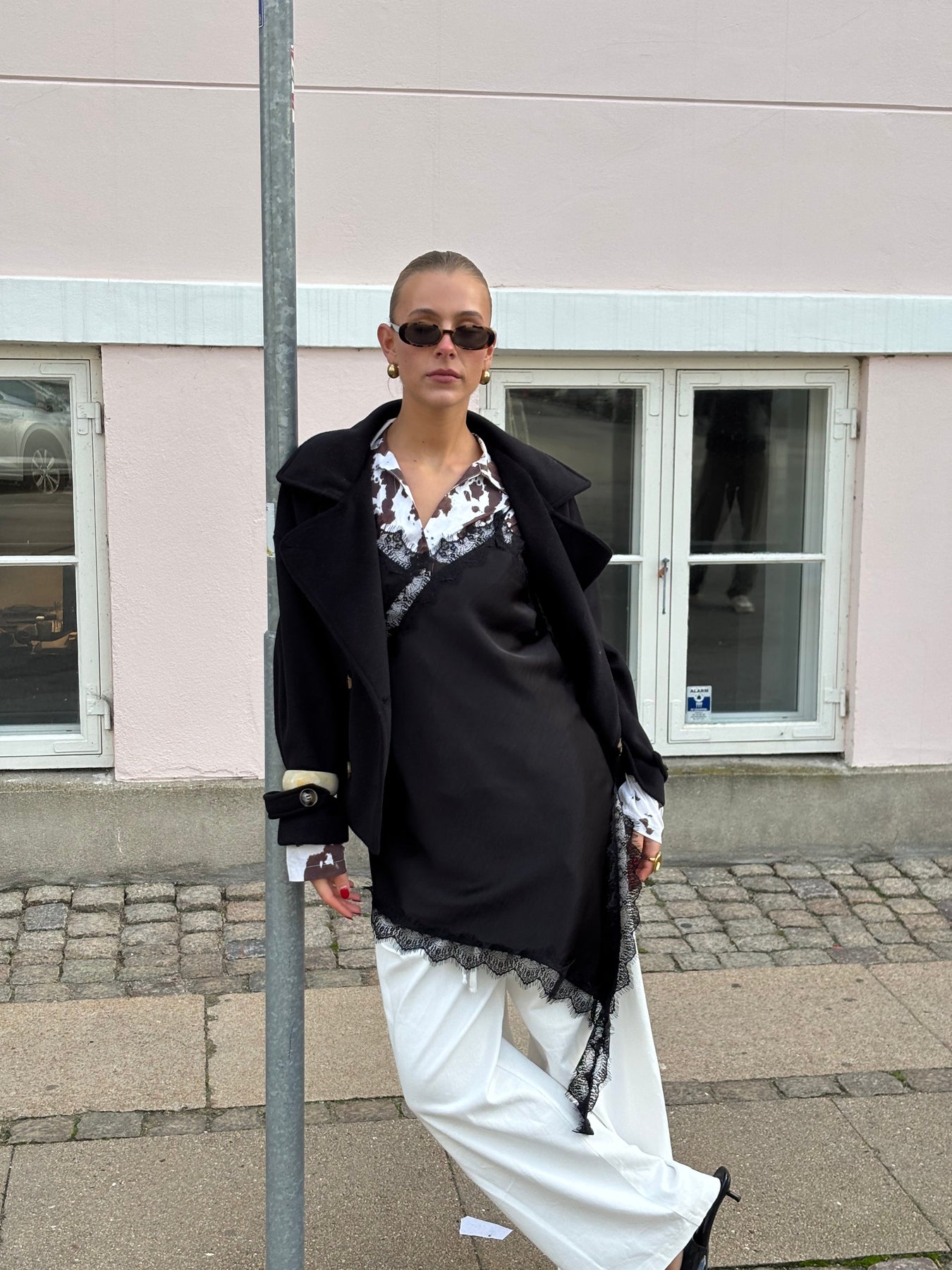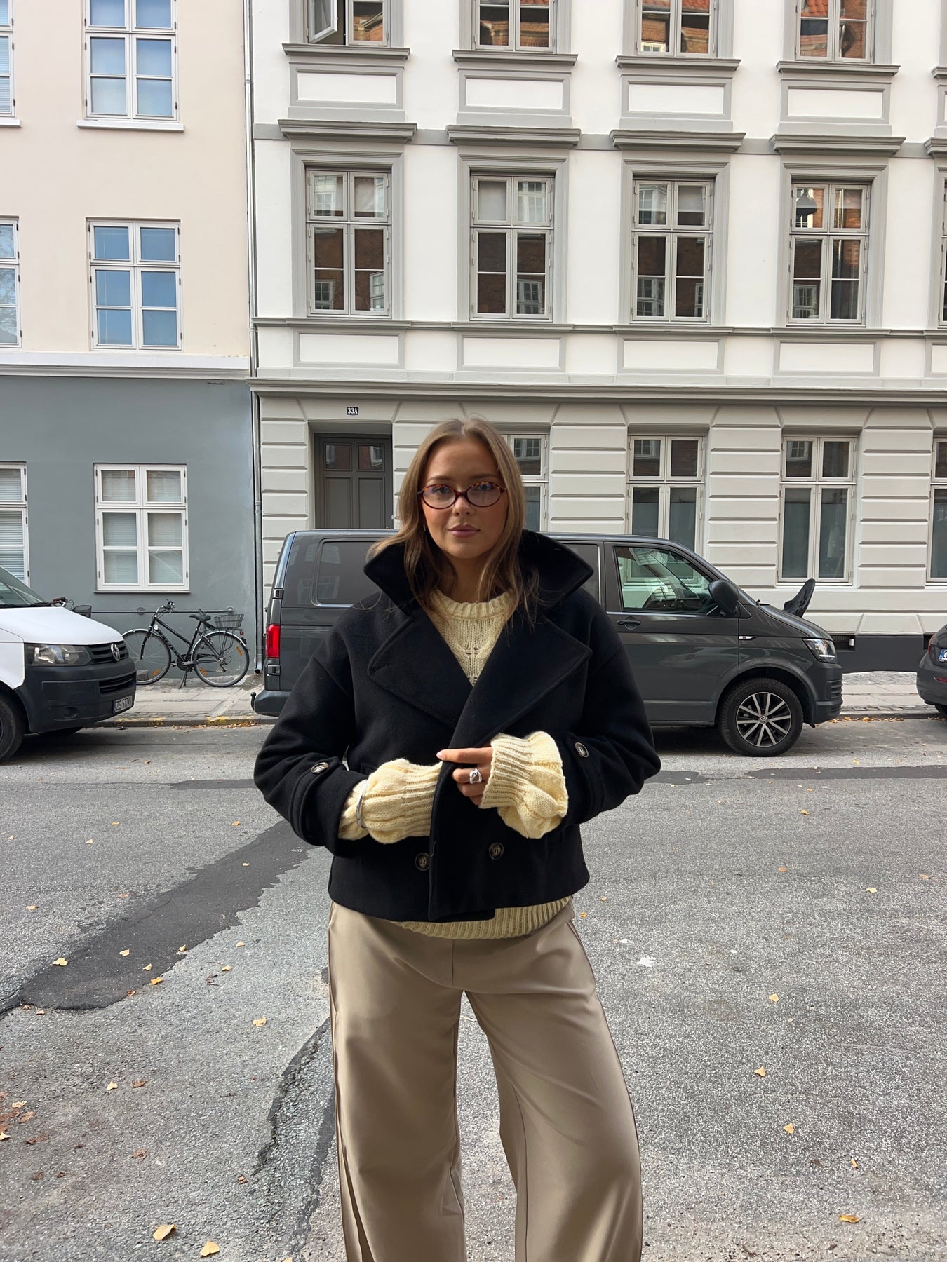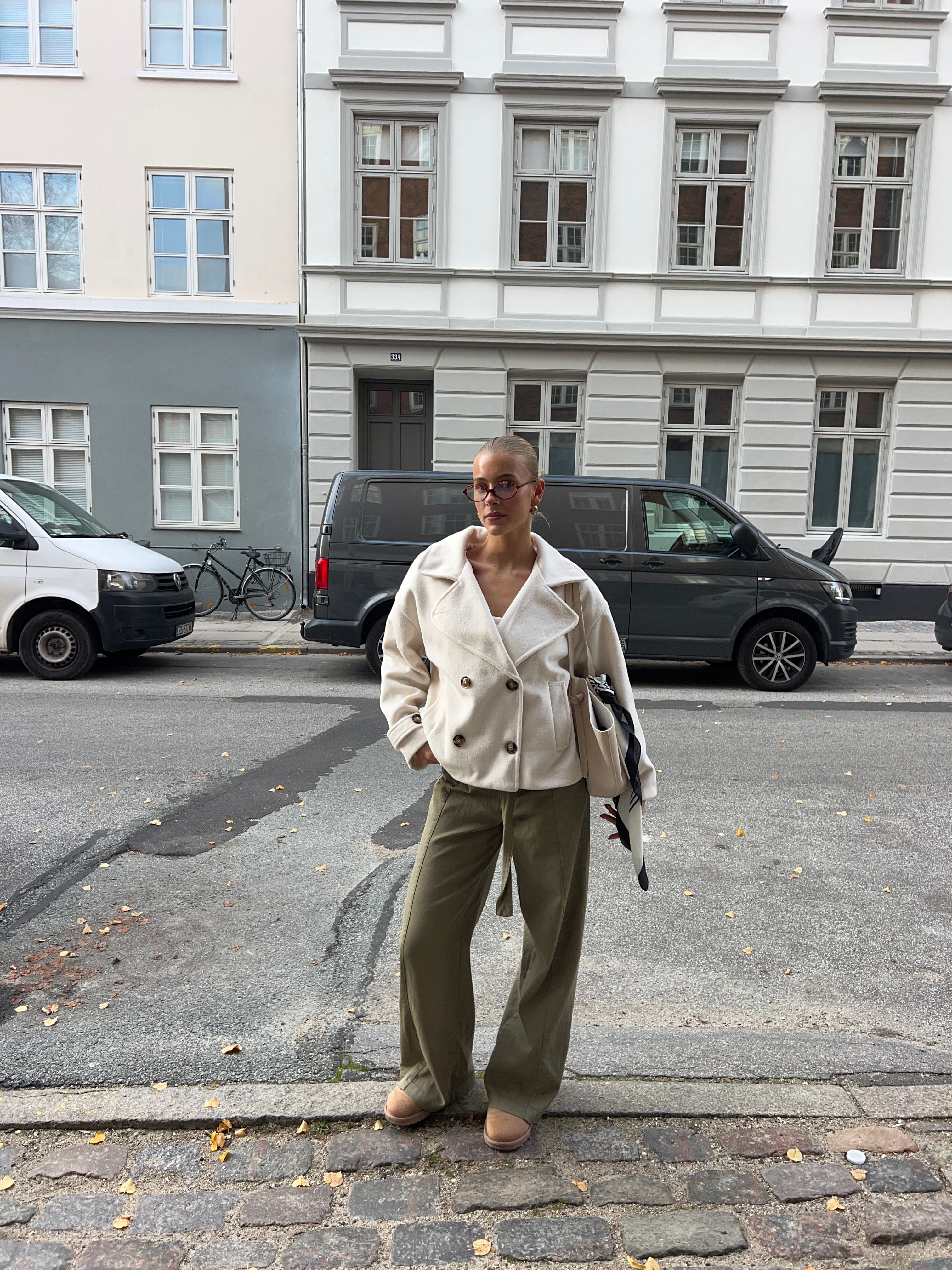 The Kelly coat is a timeless and elegant short coat, perfect for the transitional and fall seasons. It has a deep V-neck and closes with beautiful brownish buttons, giving it a classic and stylish look. The sleeves also have fine button details that add an extra touch to an otherwise simple and versatile jacket that can be styled over everything from jeans to dresses – ideal for cooler days when you still want to maintain a sophisticated look.