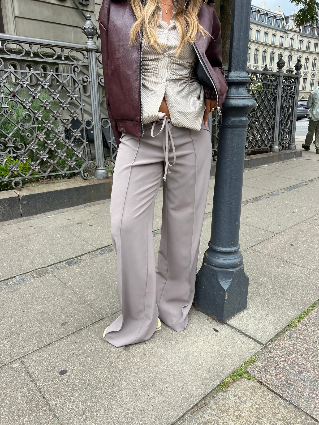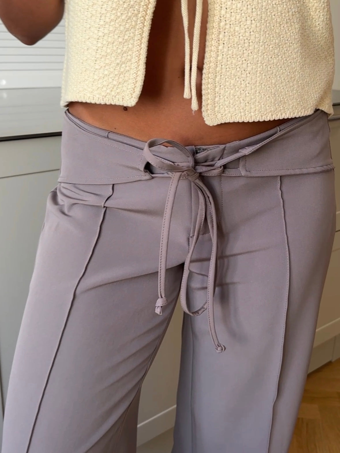 Kaia low-waist suit trousers feature a modern low-rise fit and a wide tie belt at the waist, providing both a flattering shape and refined detailing. The adjustable waistband makes them easy to wear and ensures a distinctive, exclusive look. The lilac beige shade offers a soft yet sophisticated style – ideal for everyday wear as well as for dressing up without going over the top.