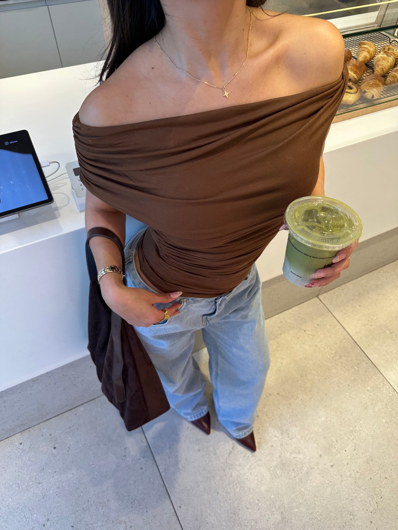 The Paola top in brown is an elegant, close-fitting top that you can wear again and again. It has a nice little extra detail in the form of a ribbed design and off-shoulder look that can easily be dressed up or down—perfect for everything from a night out to a regular day with jeans and sneakers 🤎