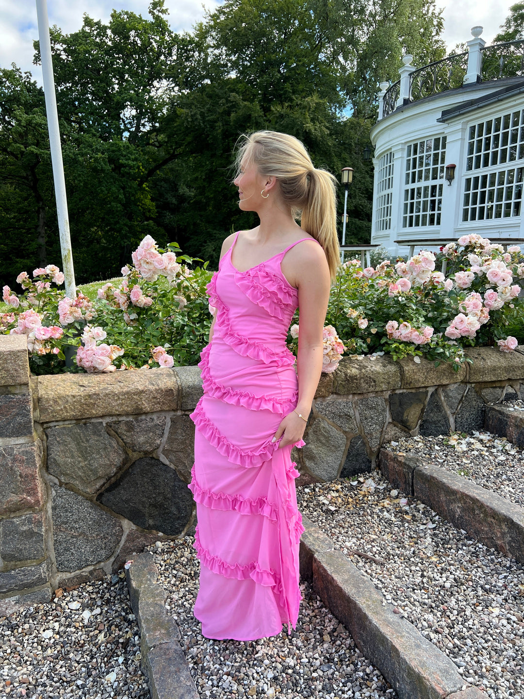 Our elegant Rie maxi ruffle dress is floor-length and features ruffles all the way down, creating a light and airy look. The adjustable straps ensure a perfect fit, while the discreet side zipper makes it easy to slip on. This dress is a safe choice whether you're heading to a festive event or simply enjoying a summer evening 💗 The perfect balance between style and comfort.